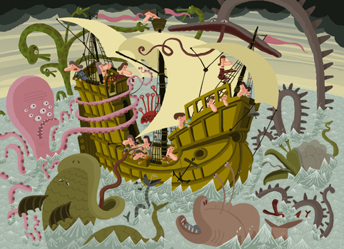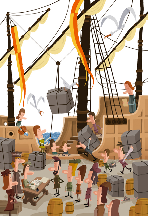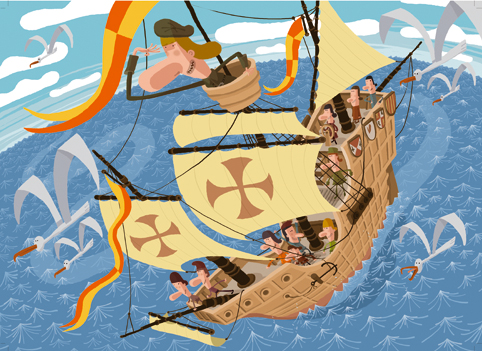 Acabo d’il·lustrar una biografia en primera persona de Cristòfor Colom. Aquí en teniu alguns dels dibuixos. a il·lustració infantil 0000