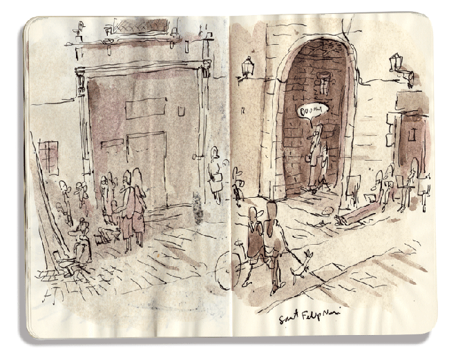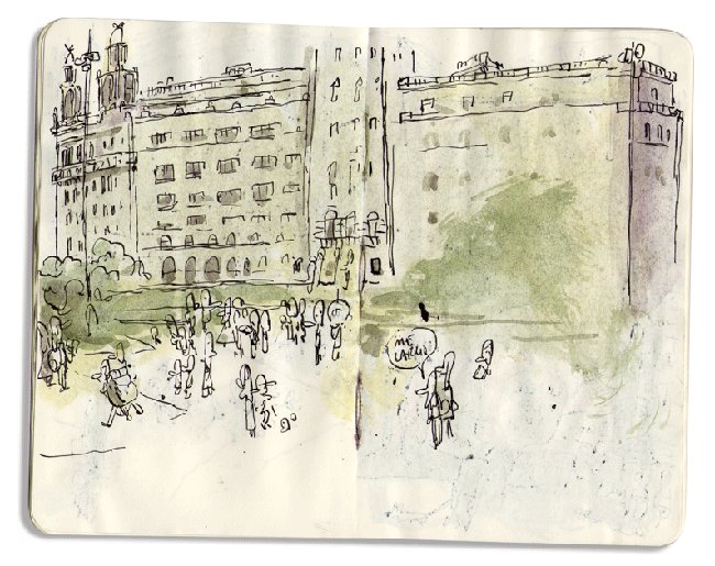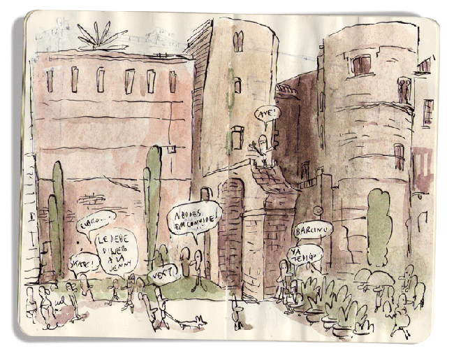 Alguns dels dibuixos que vaig fer pel barri d’Horta amb els assistents al taller Drawing on Location.