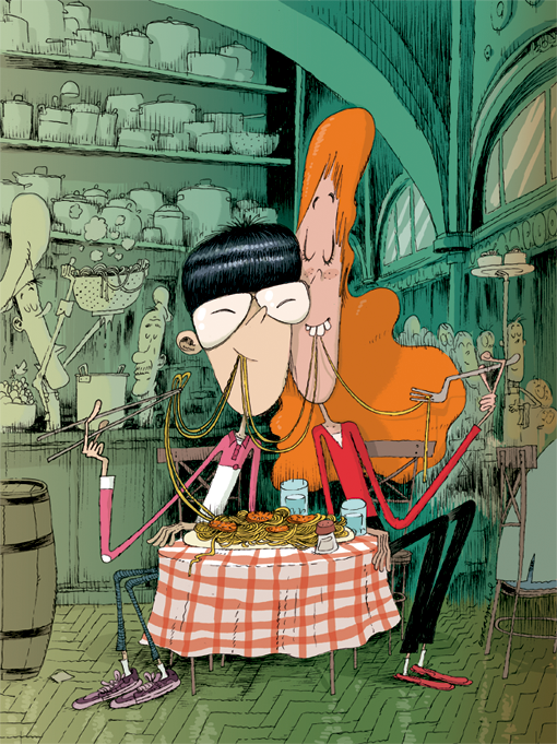 Imatges de la meva recent col·laboració per a la revista Cavall Fort. Aquest cop, dibuixant la coberta del dossier La pasta i una pàgina amb acudits al voltant d’aquest aliment.