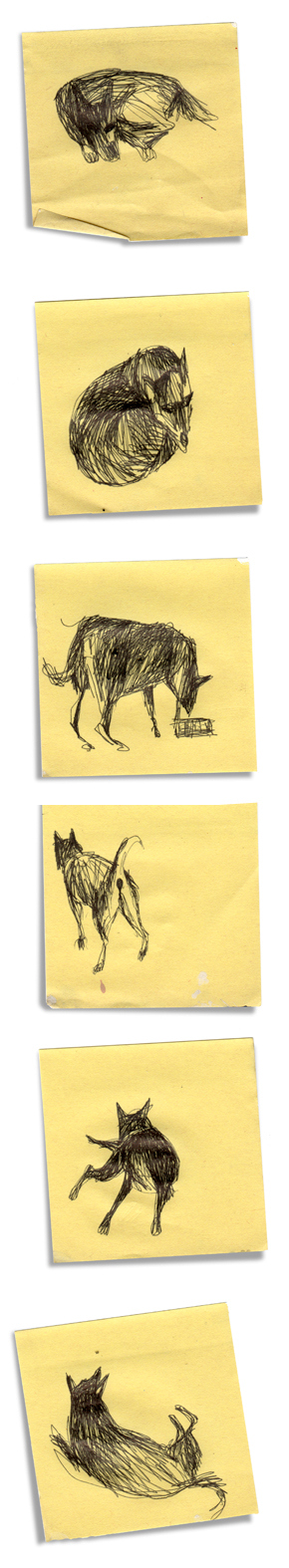 Aquest era el meu gos petaner. Va morir fa anys però ara el ressuscito amb aquests dibuixos que vaig fer en uns Post-It. Fixeu-vos en el que ha fet aquest dibuixant canadenc anomenat Marc Johns amb alguns d’aquests paperets.