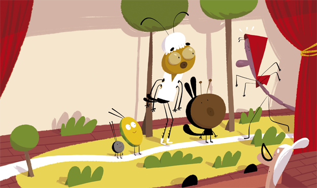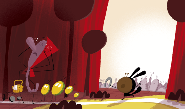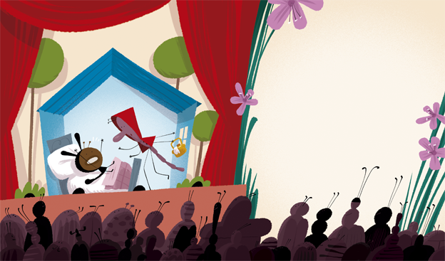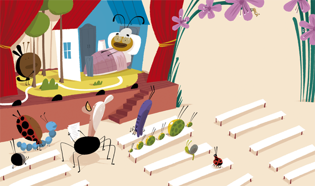 La marieta Antonieta i els seus amics estan preparant una obra de teatre i assagen cada dia. L’Octavi, l’insecte pal, farà de la Caputxeta Roja, però li fa vergonya actuar: té por d’equivocar-se i que tothom se’n rigui. Com aconseguiran que s’atreveixi a sortir a l’escenari?